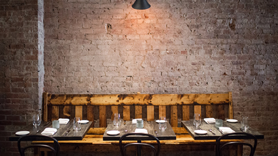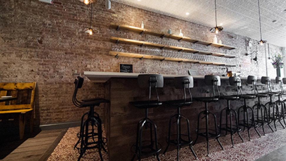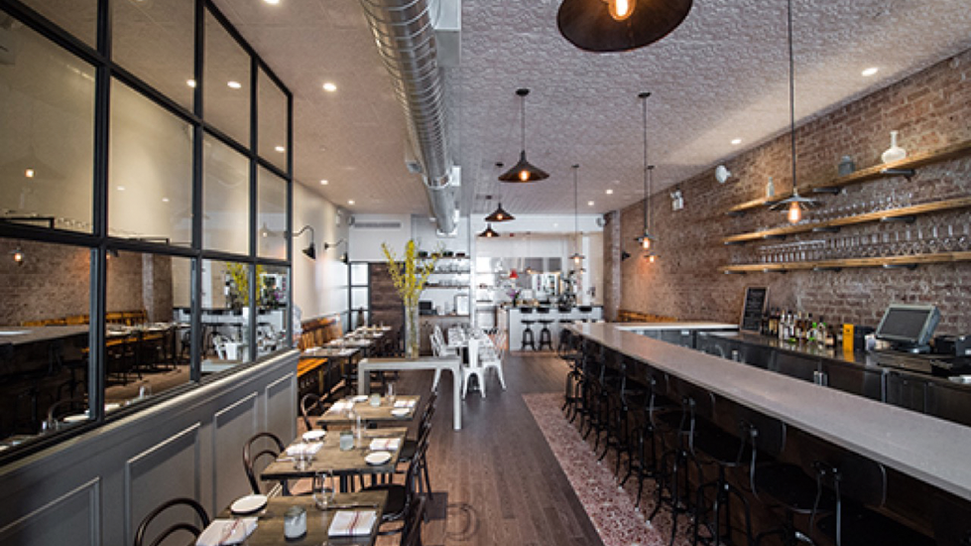 In this most unlikely commercial strip in lower Manhattan, amidst the overturning of the street for new sewer replacement stands a modern temple to wine and the lovers of it. The simple space with a few well chosen surface textures and treatments lets the star product shine The open kitchen and the intoxicating smells emanating from it reminds everyone that top notch food is also available. This is the first American outpost of this well respected and long established same-named Parisian restaurant. Early reviews have made it a knockout for its food, its wine, and thankfully, its interiors.